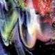 Cranberry, Blue. Green and White Ripple. 1 Sq. Foot